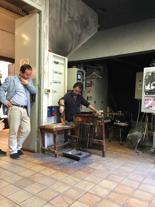 吹玻璃表演,几秒钟做了个马。旁边托腮的老外是个中国通解说,后来买玻璃制品,销售能力了的。