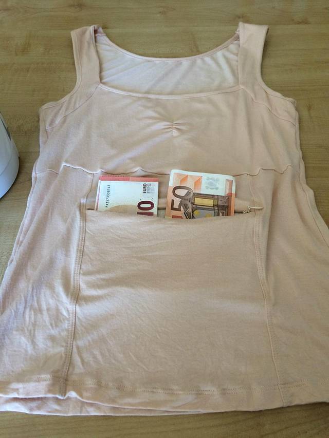 很大的口袋可以装下钱和护照,可以插胸垫的,柔软舒适。比防盗裤衩好。