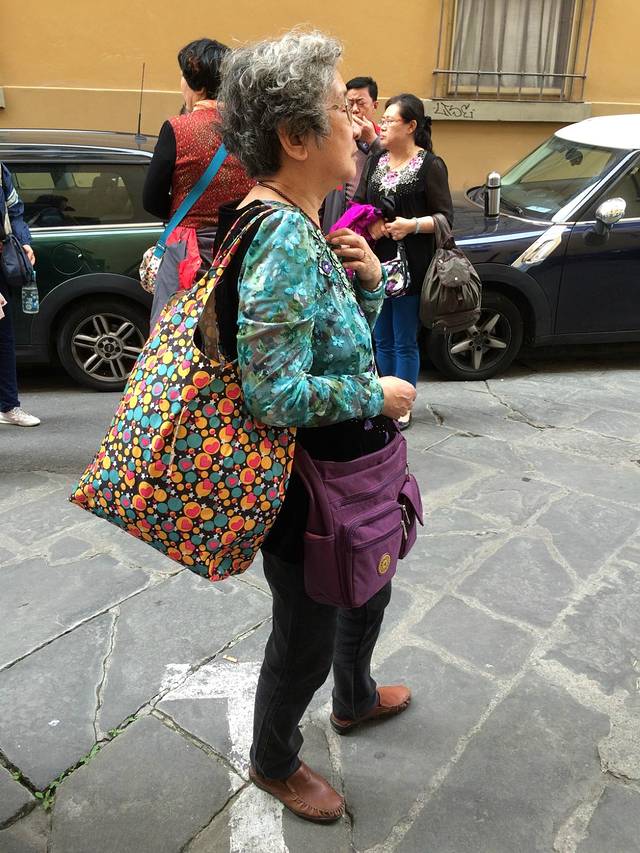 在意大利佛罗伦萨老宫前广场上商店购买,24欧。前后都有兜,是我购物中最贵的。