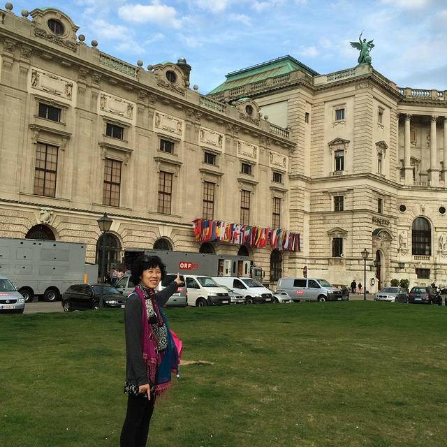 飞机准点到达,可在机场等了半个小时接团的车。直接开到玛丽亚特雷西娅广场,霍夫堡皇宫及维也纳歌剧院时,就没了太阳。出关时照了张像,确定自己真的出国了。看那超多的外国旗帜,很感慨。在维也纳自费项目中有美泉宫60欧,没时间去。烤排骨风味餐35欧不安排,维也纳音乐会60欧没买到票。想自己还做功课看了攻略纠结去不去真可笑,唉,跟团由不得自己啊。