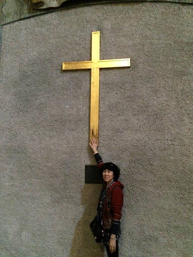 身后的椅子是为朝圣的信徒准备的。我又忘了不能正对照腿,罗圈啊。