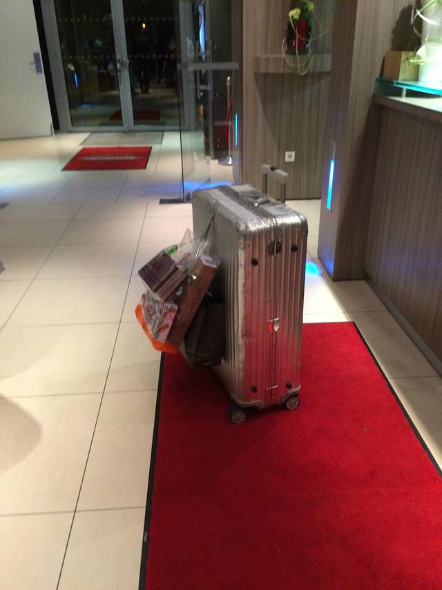 导游的箱子,最前面的袋子里放着全团人的护照,一会要发给大家。