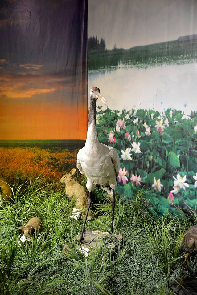 地下一层有几个展览:每月一县展出的是“松花江畔,肇兴之源——肇源远古文明印象展”。肇源远古文明印象展里面有一件王氏水牛的骨架,也是一件国家一级标本。第一件王氏水牛化石是1922年由内蒙古乌审旗蒙古族农民旺楚克发现的。旺楚克平时用汉名,叫石王顺。当年法国神甫桑志华到内蒙古进行考古调查,雇用一批中国农民挖化石,石王顺是主要参加发掘者之一,他挖出了这种水牛的头骨化石。当时参加发掘的农民不叫他石王顺,也不叫他老石,而是亲切地直呼其名叫王顺。而这位法国神甫以为他姓王,用法语拼音记录下来。后来古生物专家布尔和德日进在研究这件水牛化石标本时,确认其为一新种,为纪念发现者,用法国神甫记录的姓氏定名为“王氏水牛”。