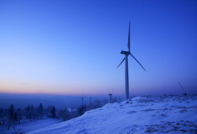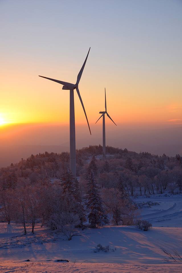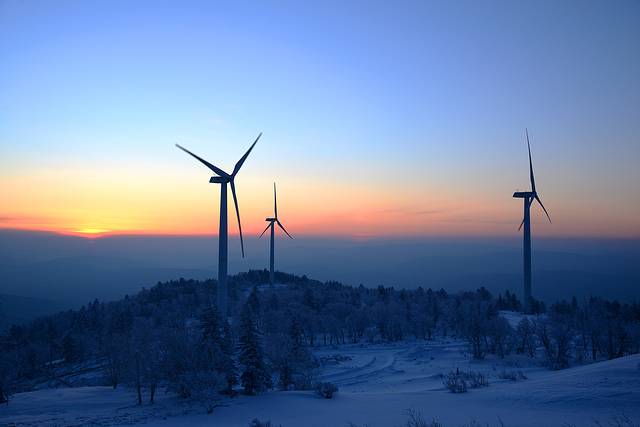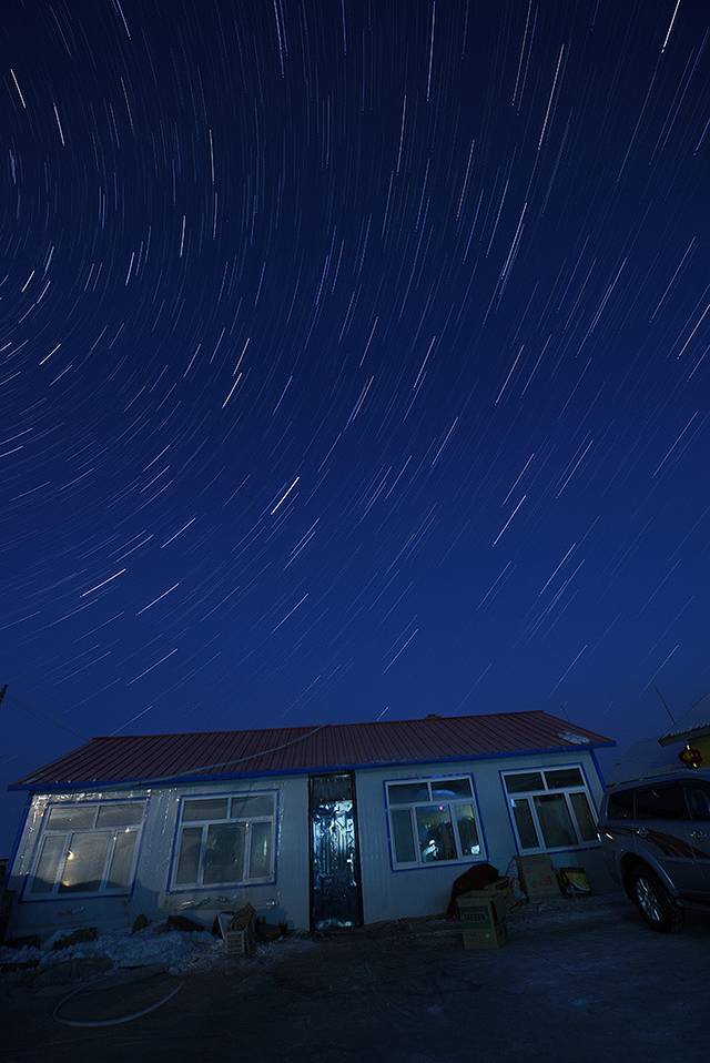 7、 二浪河到风车山距离30公里,风车山是当地的俗称,实际上叫风电厂。从二浪河往亚布力开,大约13公里分路,这一段路是亚雪公路,双车道的冰雪路。接着往风电厂方向,开13.5公里到风电厂厂房,再往上开2~3公里到山顶。这一段路是盘山的冰雪路,慢慢开问题不大,厂房下面有两块暗冰,是山坡上化的雪结成的冰,过的时候要小心。过了厂房有很多岔路,每一条岔路通向一个风车,一般是遇岔路往右开,一直可以开到山顶。去风车山分路后车非常少,当天看日出的就我们一辆车。