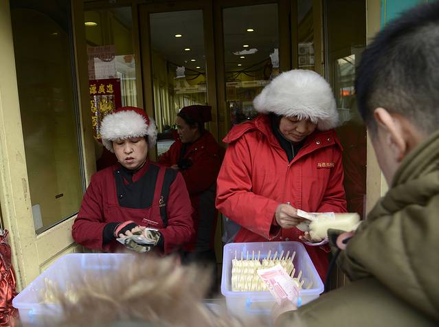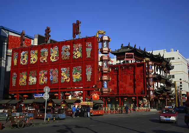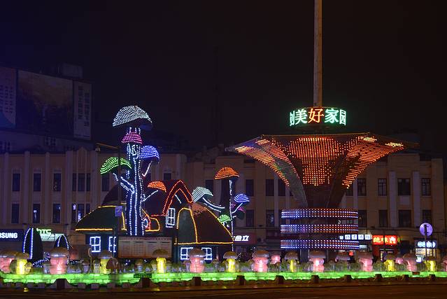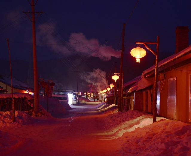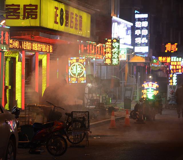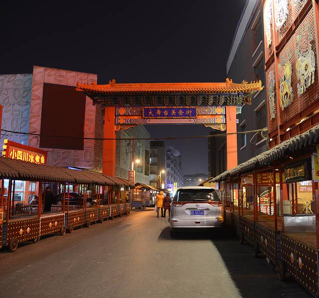 安顿好了住处以后出去吃晚餐,鸭血粉丝汤,反正不是东北的风味。饭后稍微逛了逛街。晚上这里还比较热闹,灯火辉煌。只是今天好像降温了,寒风呼啸,冷得很,感觉比哈尔滨温度还低。我们买了根糖葫芦,冻得跟石头似的。糖葫芦一根3元,比哈尔滨的5元便宜一些。
