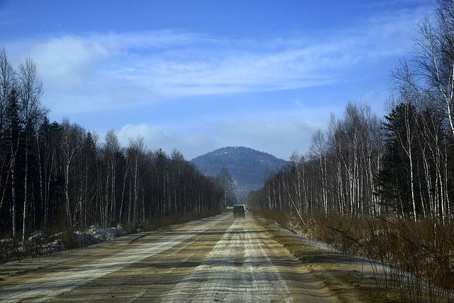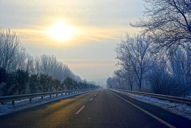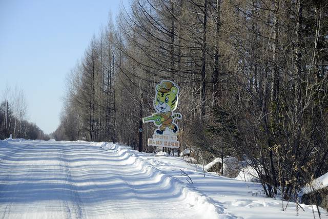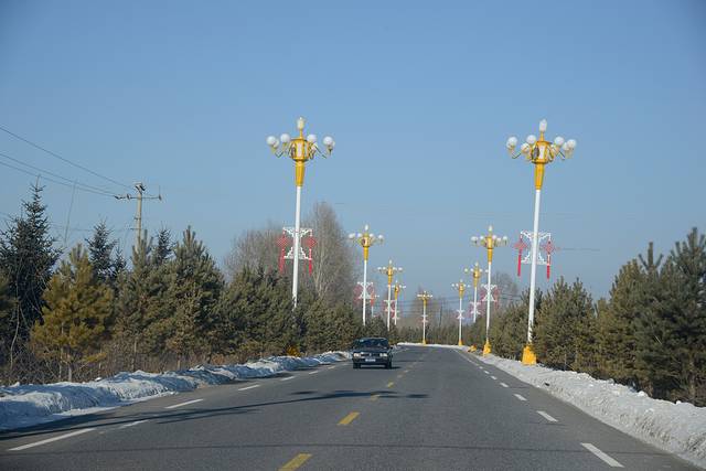 这两天温度高,路上的雪又化了不少,4:10我们就开上了没有雪的好路,里程表2876公里。至此为止,我们这次行程中的冰雪路面就算告一段落了。明后两天计划游览哈尔滨和沈阳,都是城市里的路了。