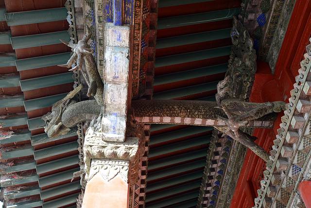 博物馆的门不大,旁边画着两幅巨大的门神,门上也画着传统的图画,很有过年的氛围。门关着,我们找了半天,才知道是从哪里进门。逛博物馆第一次碰到这种情况。本来打算租个讲解器参观,不过工作人员告诉我们,博物馆在重新布展,讲解器没法用。重点展厅就是自然和历史两部分,自己看没有问题。