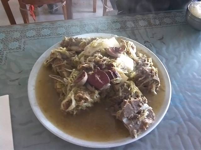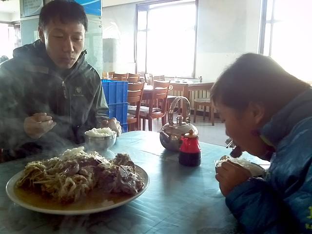 9:05离开大教堂,开车去旅店。我们还是住在前天的八面来客宾馆,轻车熟路,9:30就到了,里程表3137公里。办好入住我们赶紧找饭吃。这个点很多饭店都关门了,我们找了一家清真饭店吃烧卖蒸饺,喝羊汤。又实惠又暖和,三个人花了56元,愣是没吃完。