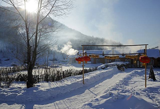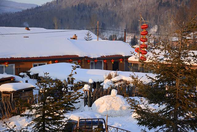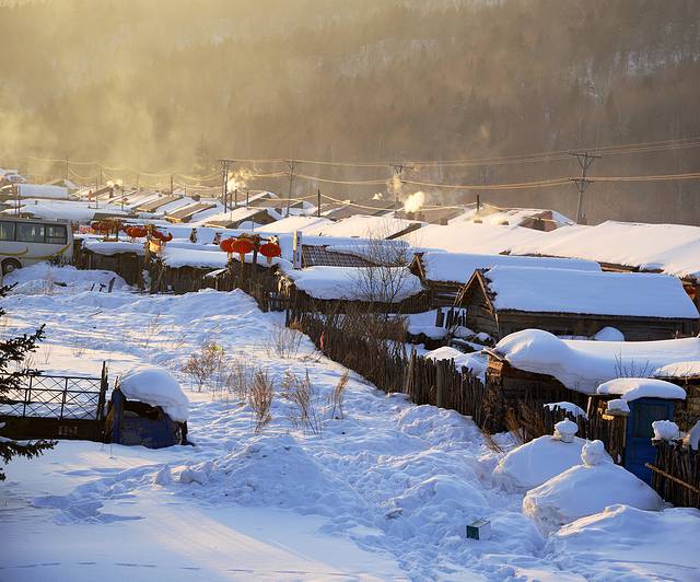 8:35回到二浪河村口,里程表2782公里。趁着朝阳正好,我去拍摄清晨的村庄。清晨这里还是很热闹的,屋顶上升起了炊烟,游客在雪地上堆雪人,打雪仗,欢声笑语一片。也有不少游客像我一样扛着相机到处转。