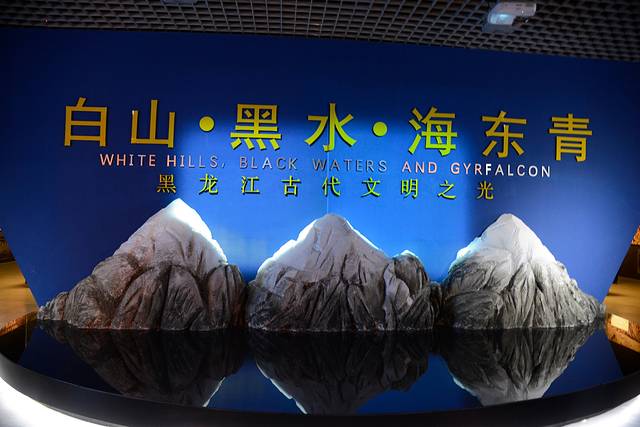 来之前在百度上查好了博物馆的介绍,这下派上了用场。我们先去看二楼的历史陈列。历史陈列的名称很大气:白山黑水海东青,很好的描述了黑龙江的地理特征和文化氛围。