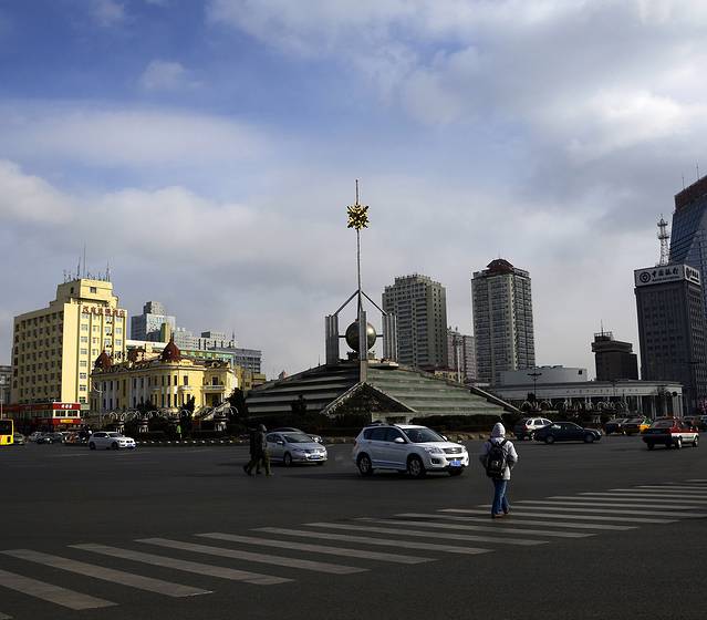 5、 哈尔滨市内的路况跟普通城市没什么区别,路面并没有雪。感觉车道比北京窄一些,很多的单行道。而且绿灯亮时,是左转的灯先亮。