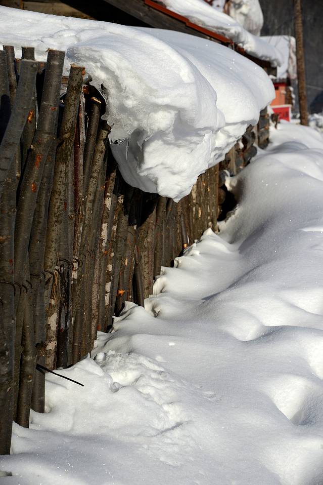 12:15回到旅店,里程表2835公里。趁着阳光正好,随便拍了几张村子里的照片。这两天温度高,到了中午屋顶上的雪开始融化,有时会有成块的雪落下来,出来进去还真得小心。