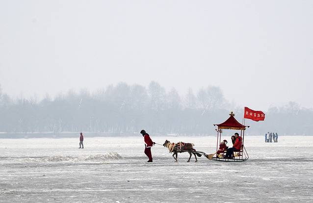 9:00回到旅店吃早饭。早餐是饺子,包了三种馅,挺香的。饭后9:30出发,按照小刘的建议去冰雪画廊看看。