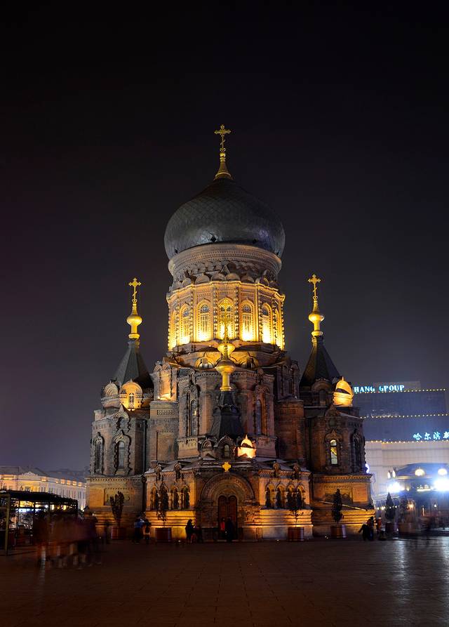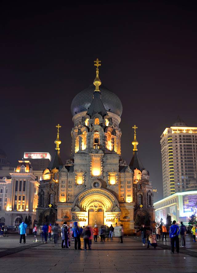 5、 中央大街、圣索菲亚大教堂的夜景都很漂亮。这是这里交通状况复杂,我感觉开车不比走路快。