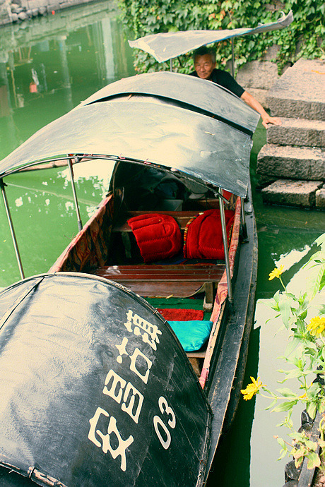 小心翼翼地下了石阶跨上船,船身微微地摇晃,大爷直安慰我不用怕,我不好意思的笑笑,谁让我是旱鸭子呢,等盘腿坐好,大爷边用桨撑开了船,悠悠地滑行在安昌古镇水面上……让我真正体会了什么叫船在画中游。