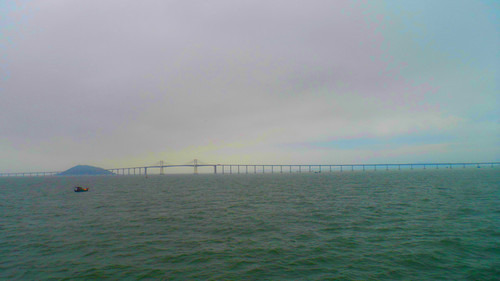 经过一番折腾,我们终于到达可以坐直达码头的公交车,心好累……