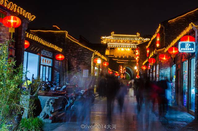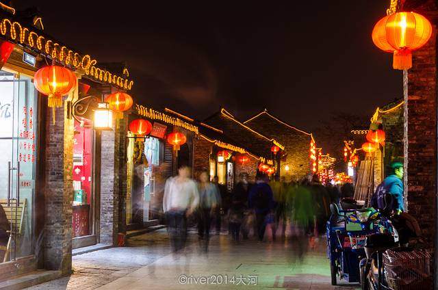 饭后回到东关街,扬州城已经入夜,东关街上灯光亮起。