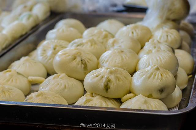 店里每天早上也在门口摆放一个摊位,蒸好的包子卖给那些没时间坐下来吃早餐的人。
