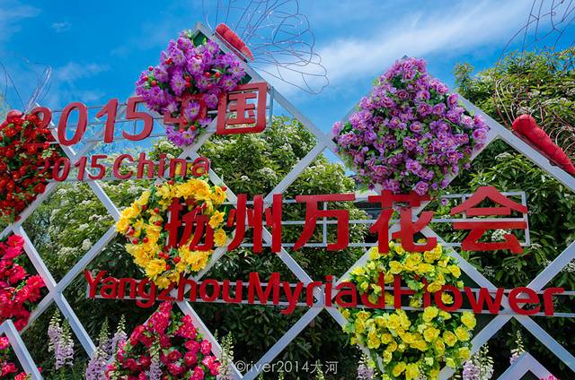 现在正在举办扬州万花会,瘦西湖内鲜花盛开。