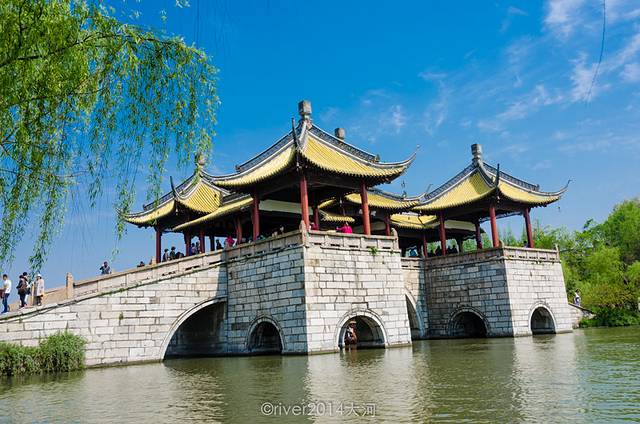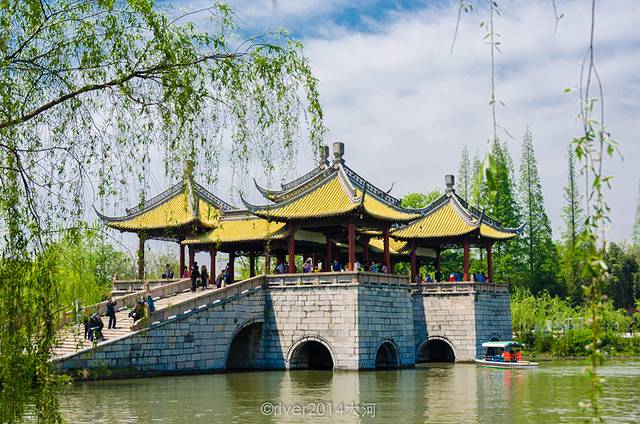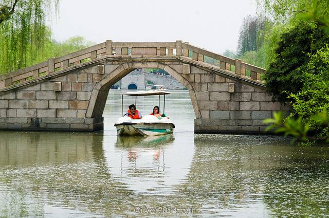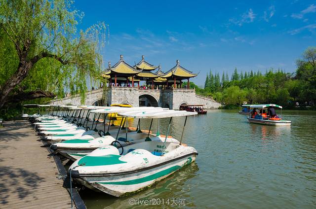 瘦西湖,听这个名字就知道这里有很多水,确实如此。水多,桥就多,乘坐小电瓶船游览也非常舒适。