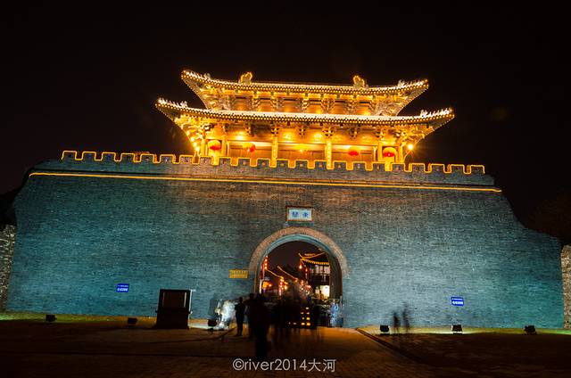 东关街的城楼在夜色下光芒四射。