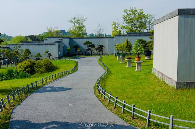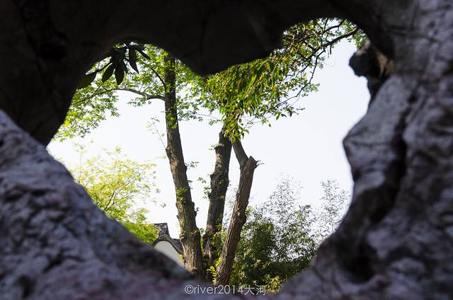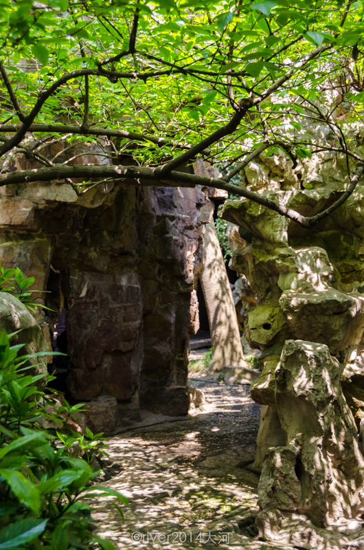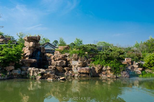 园内完全是园林的设计,中间一片湖水,湖边建有假山,绿树环绕。