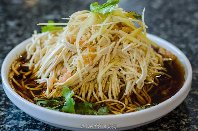 大煮干丝是淮扬菜的代表菜,讲究刀工,主料用豆腐丝,加入了笋丝,虾仁,木耳,青菜,每家店的用料不尽相同,味道鲜美,而且份量很大,装了一小盆。