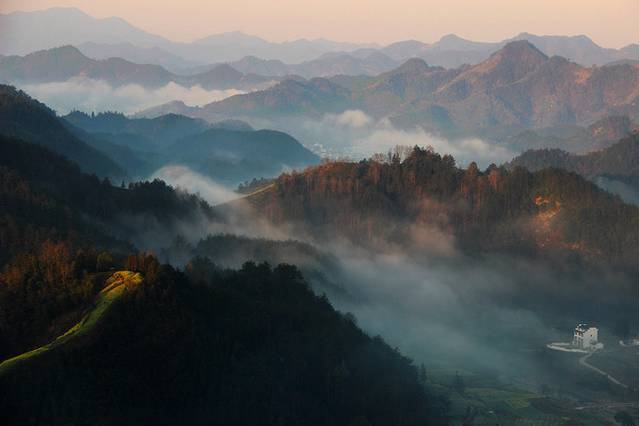 乘着夜色去往黄山歙县,在石潭村稍作歇息后,天未亮包车到达下汰村的观景台。这里地势较高,四周景色一览无余,是摄影的绝好位置。