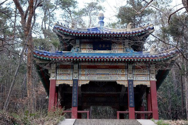 正气亭,位于紫霞湖北侧的山坡上,蒋介石亲自题写“正气亭”三字制匾,并书楹联:“浩气远连忠烈塔,紫霞笼罩宝珠峰”