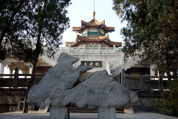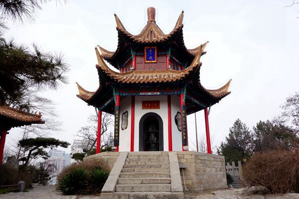解放阁,阁址位于当年济南战役中人民解放军攻城突破口处,在原济南古城墙东南角,隔护城河与黑虎泉相望