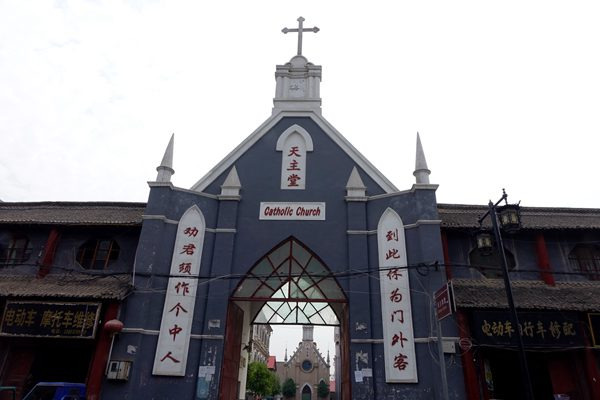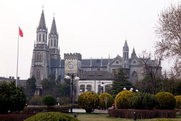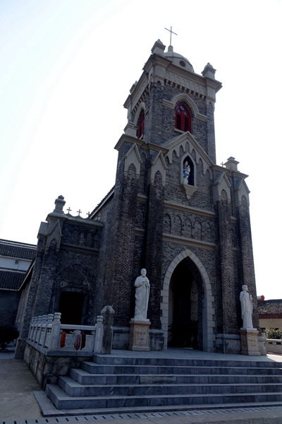位于老街区南部,建于清光绪九年(1880年),为法国传教士金式玉所修建,为华东第二大天主教堂,与上海佘山“圣母堂”齐名,是较典型的欧洲哥特式建筑风格,平面十字形,入口处为砖砌钟塔楼,后面为礼拜堂,尖坡顶。