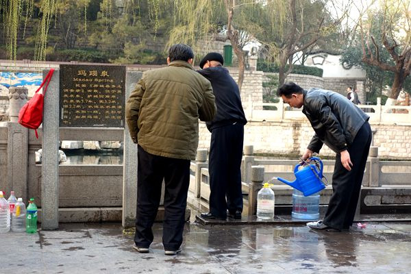 珍珠泉,在山东省人大里,有门卫,但随便进!(离曲水亭街很近,泉城的鱼也很是幸福)