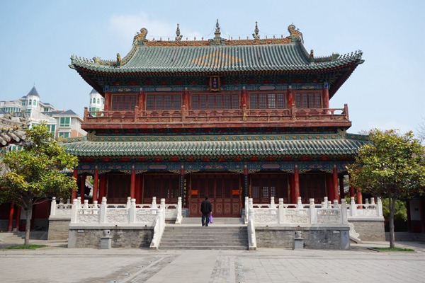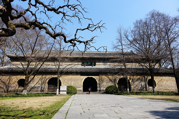 无梁殿整座建筑全用砖石砌成,无梁无椽,该殿是灵谷寺仅存的一座古建筑。