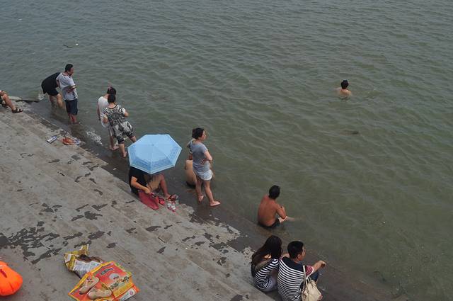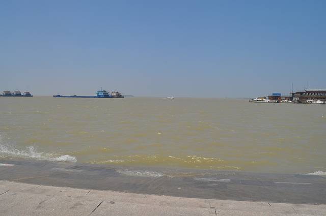 洞庭湖口,每当有船路过,湖浪拍打着岸边,挺壮观的!