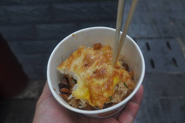 湖北豆皮,外面是蛋皮,里面是糯米,可能是饿了吧,觉着特别好吃,嘻嘻。后来回重庆在解放碑吃了一次,却没有这种美味的感觉了
