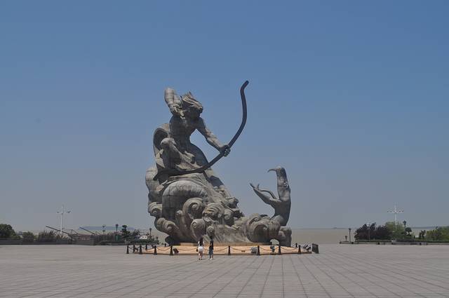 后羿射蛟像。巴陵广场,广场很大,但是出奇的热,重庆的小伙都快受不了了。