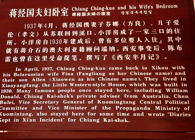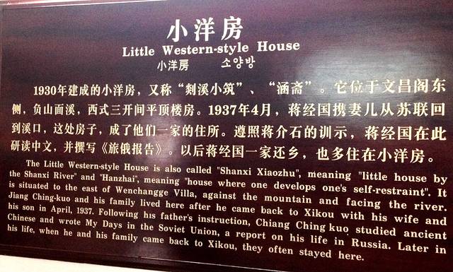 “丰镐房”即蒋氏故居,是溪口镇上最重要的人文景观,1996年11月,被国务院公布为全国重点文物保护单位, 从前,按照当地的习惯,每个家庭都有房名,蒋介石父亲的房名叫“周房”,蒋介石在宗谱中属“周”字辈,蒋介石由此推及西周两代皇帝建都的丰邑、镐京作为自家的房号,希望自己的家族也能象西周一样兴旺发达,丰镐房的名字就这样定了下来,同时蒋介石依据房名,给经国、纬国两个儿子,分别取了建丰、建镐的乳名。