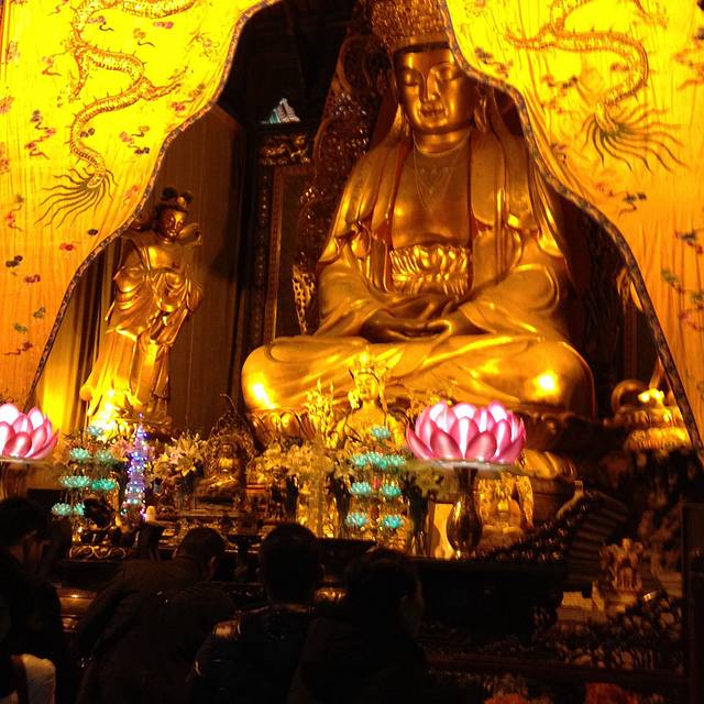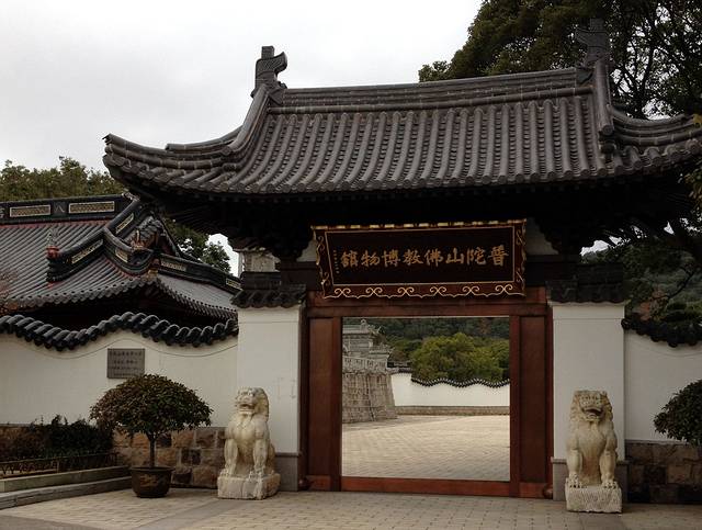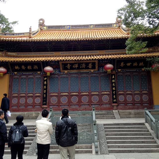 普济禅寺 又叫前寺,坐落在白华山 南、灵鹫峰 下,是供奉观音的主刹。全寺占地37019平方米,建筑总面积15289平方米。寺内有大圆通殿、天王殿 、藏经楼 等,殿、堂、楼、轩共计357间。大圆通殿是全寺主殿,人称“活大殿”,供奉着高8.8米的毗卢观音。普济禅寺与法雨禅寺 、慧济禅寺 并称为普陀山 三大禅寺。