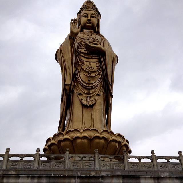 普陀山位于浙江省舟山市,是舟山群岛中的一个小岛。它与五台山、峨眉山、九华山并称为中国四大佛教名山,是观音菩萨的道场,被誉为“海天佛国”。普陀山观音道场始建于唐代,历朝累有兴废,目前尚有普济、法雨以及慧济三大寺和大乘、梅福、紫竹林等,数三十座禅院供朝圣、观光。山上文物众多,有元代的多宝塔,南京明故宫拆迁来的“九龙殿”以及建于明朝万历年间的“杨枝观音碑”等等。雄峙于杭州湾以东烟波浩渺的莲花洋中的普陀山,以其观音道场的神圣地位,以及二龟听法石、心字石、梵音洞等普陀十二景优美的自然风景被誉为“海上有仙山,山在虚无缥渺间”,成为驰誉中外的旅游胜地。