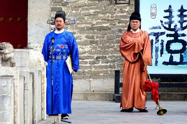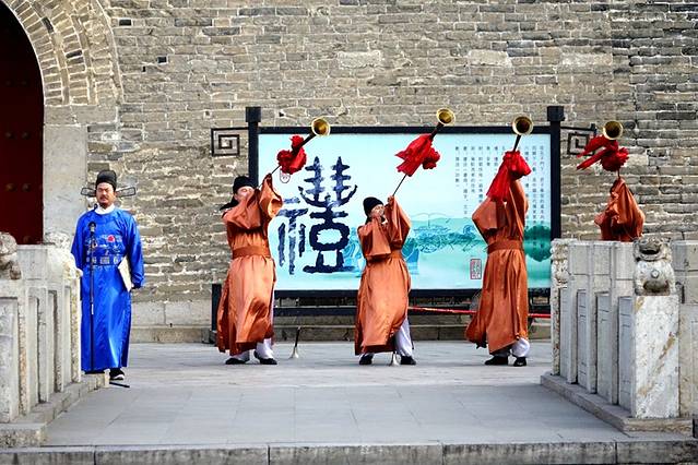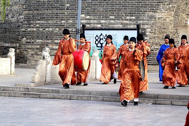 吃过早饭后去看“晨钟暮鼓”仪式(晨钟开城仪式:早8点;暮鼓关城仪式:晚5点),仪式在曲阜老城门,也是孔庙正门举行。