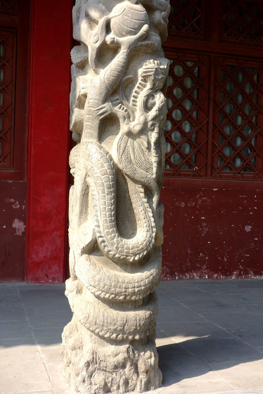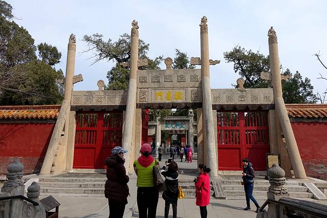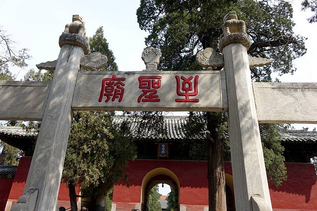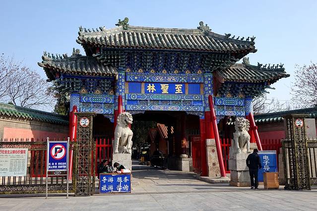 参观孔庙。买了票,走过刚才看节目的城门,就是孔庙了。孔庙是后人为祭祀孔子而修建的庙宇,始建于孔子死后第2年。面积有327.5亩,仿皇宫之制,分九进院落,左右对称排列。孔庙恢宏壮丽,面积之大,历史之久,保存之完整,是世界建筑史上的唯一孤例。