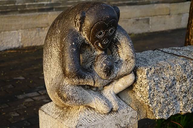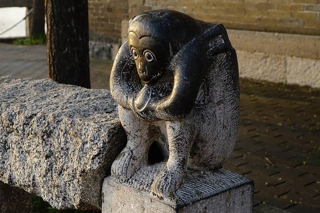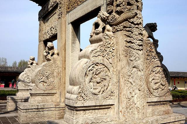 “棂星门”棂星门建于明永乐十三年(1415年),原为木质结构,清乾隆十九年(1754年)衍圣公孔昭焕重修孔庙时换成石柱铁梁。棂星,即天田星,凡祭天先祭灵星,孔庙设棂星门,意为祀孔如祀天。