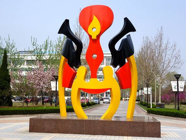 一进阙门(大门)迎面是一组孔子与弟子列国行青铜群雕。其后是依“六艺”而建的六厅。