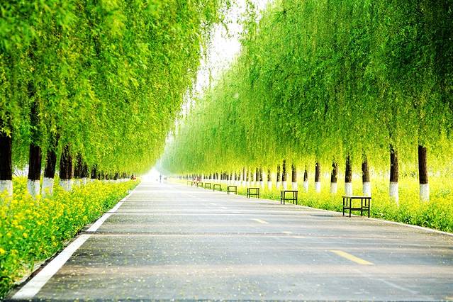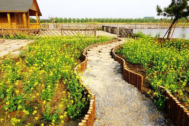 再往后走是湿地公园,建有300亩湿地,与万亩油菜花基地连成一片。