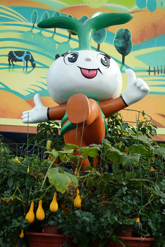 菜博会吉祥物——蒜宝宝笑迎八方来客。