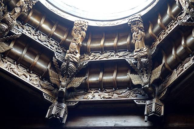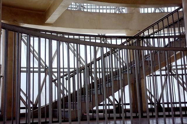 实际上是有两道楼梯,离圆心近的那道楼梯是直着螺旋上升,而离圆心远的则弄了好多铁栅栏,让游客在里面转来转去的找出口,很无聊(这个可能小朋友会喜欢)。