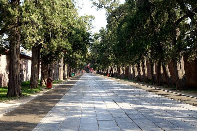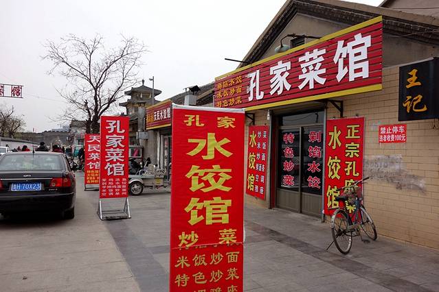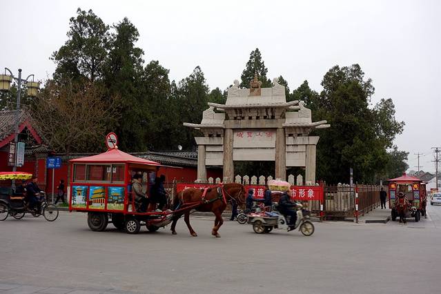去孔林的车很多的,有出租车、有马车、也有游览车。我们是走过去的,也就十几分钟。