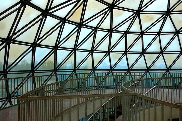 我以为上面会有点什么,就上去了(还是我家先生聪明,看过俩厅后,直接花园里待着了),其结果是晕晕忽忽的上去,迷迷糊糊的下来,顶上什么都没有,连风景都看不到(玻璃不太透)。