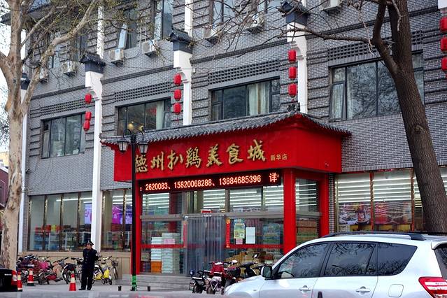 晚上可到创意园门外的德州扒鸡美食城吃扒鸡,像北京烤鸭最正宗的是全聚德,扒鸡美食城的扒鸡最正宗。其他街边店里的杂牌子和火车站的建议不要买。