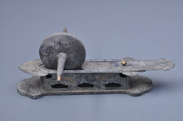 J6茶碾1套。长25.48厘米,高5.25厘米,重386.4克。通体长方形,碾槽卧置于碾座之中,弧形尖底,由碾座、碾槽、辖板、碾轮组成。